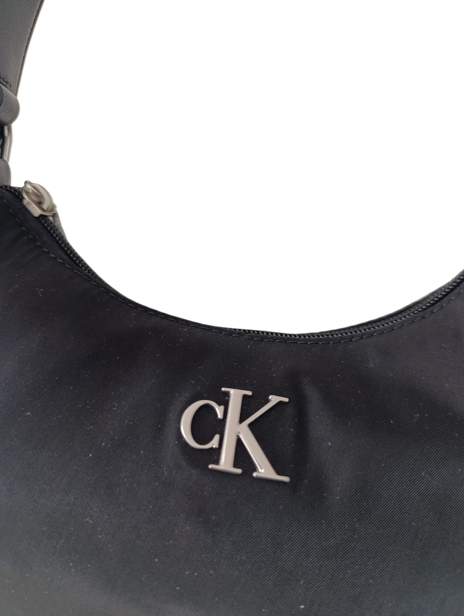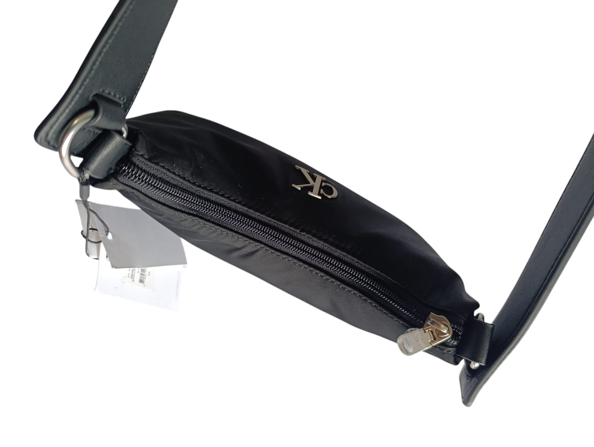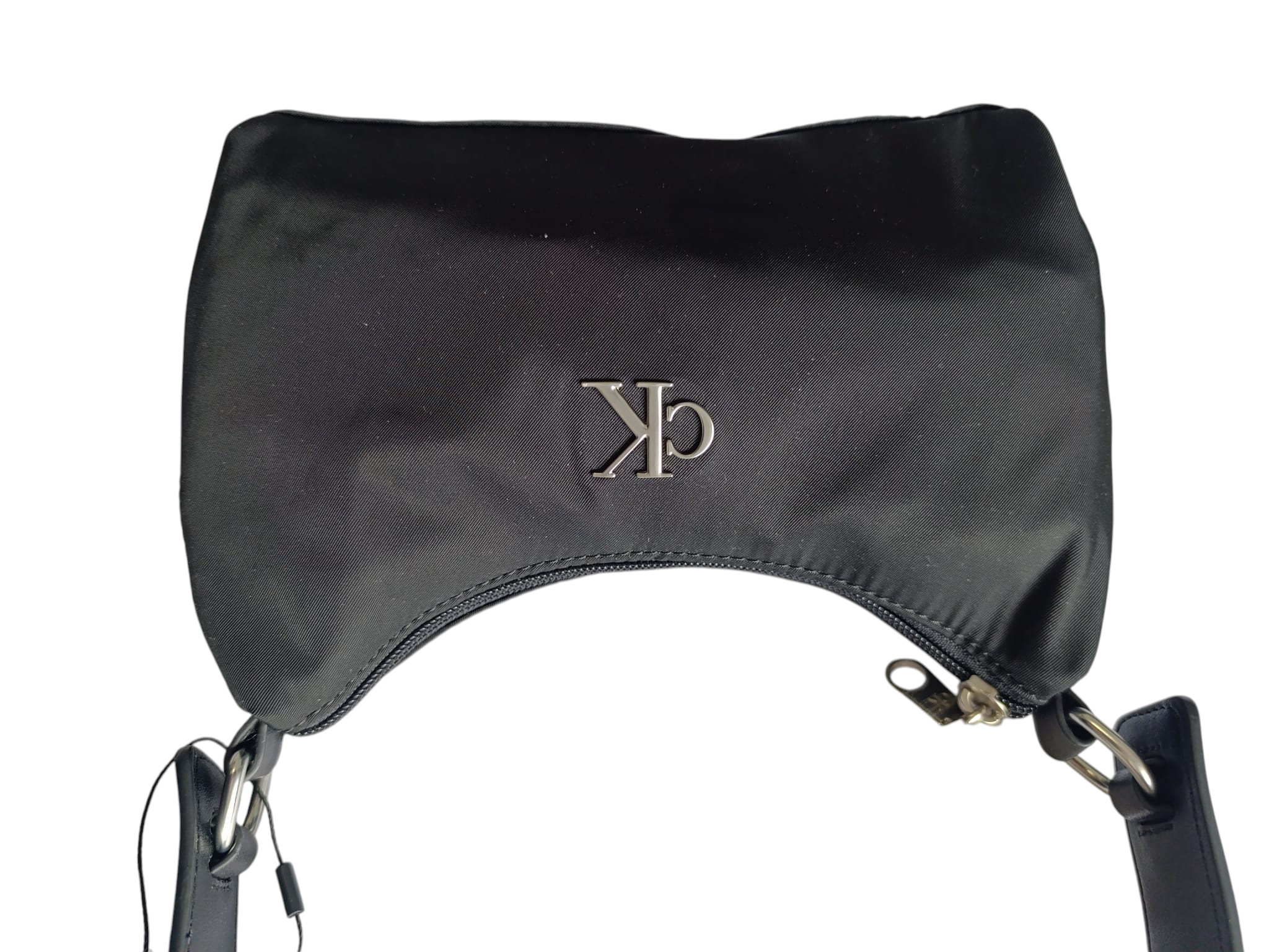 • logo de metal plateado brillante de Calvin Klein en la parte delantera