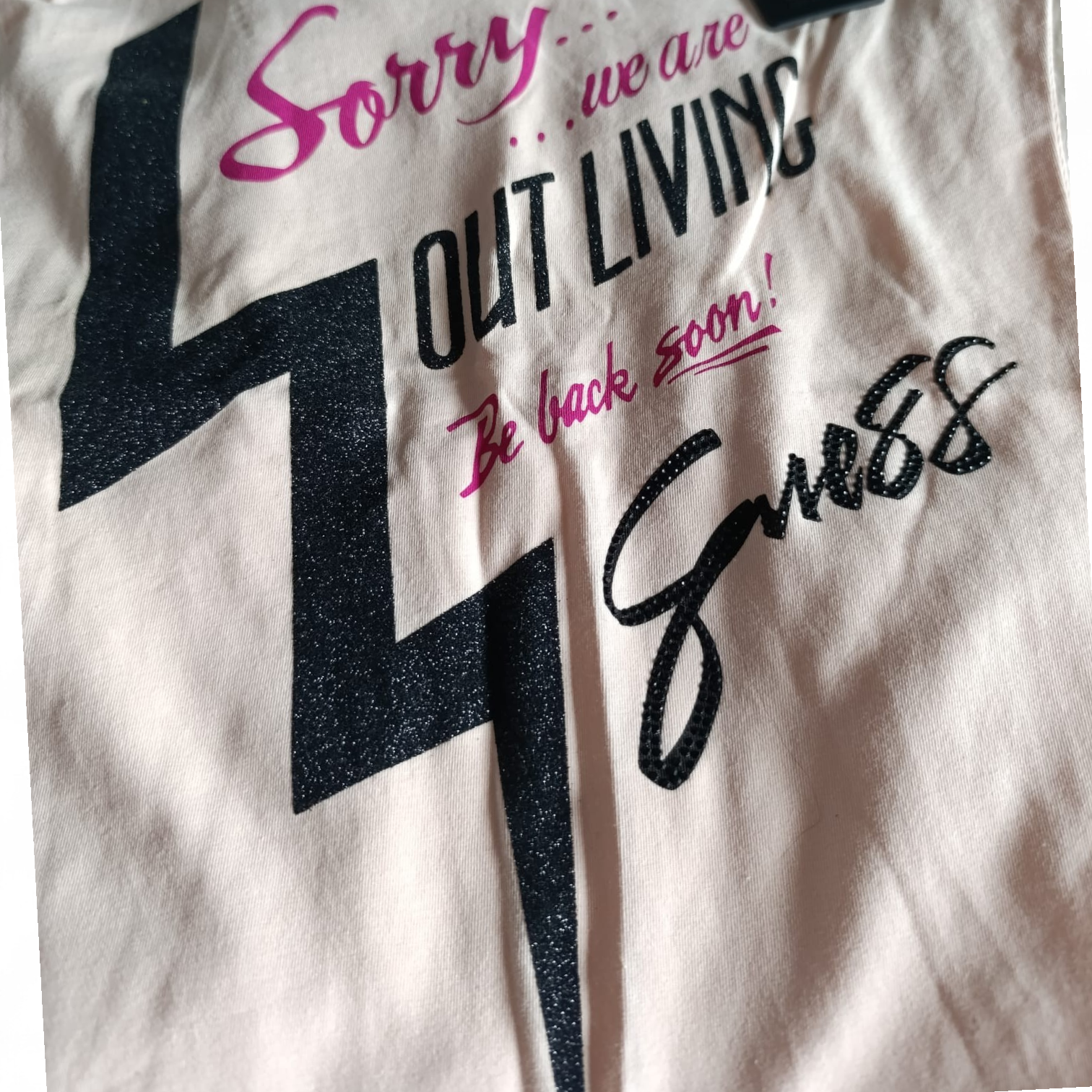 Camiseta rosa salmon de manga corta combina comodidad y estilo en una sola prenda. Presenta un cuello en V favorecedor y un estampado gráfico llamativo con un rayo central y texto decorativo, ideal para quienes buscan un toque urbano y moderno en su outfit.