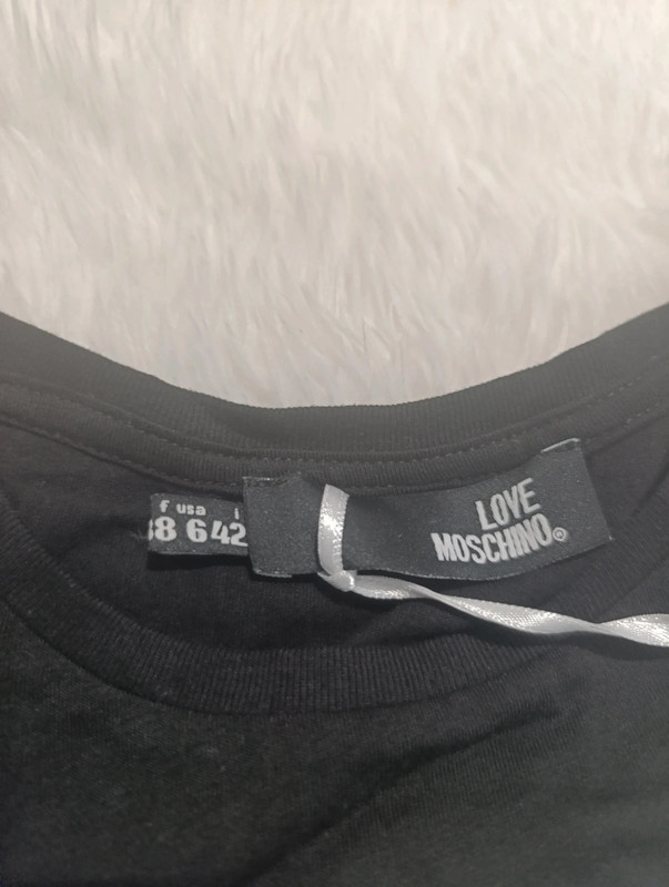 Camiseta Moschino original de algodón puro, talla 42 IT. Diseño clásico con logo visible, cómoda y perfecta para el día a día.