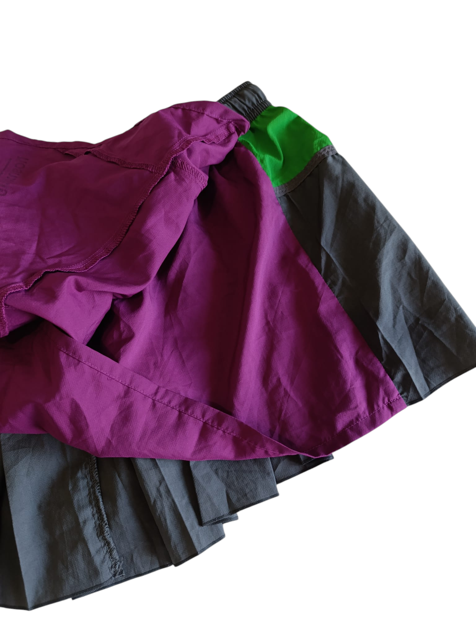 Falda Nike de estilo deportivo premium, confeccionada en tejido técnico ligero y transpirable. Diseño multicolor en tonos burdeos, negro y verde, con cintura elástica ajustable para un confort sofisticado. Ideal para looks athleisure de alto nivel y estilo urbano contemporáneo.