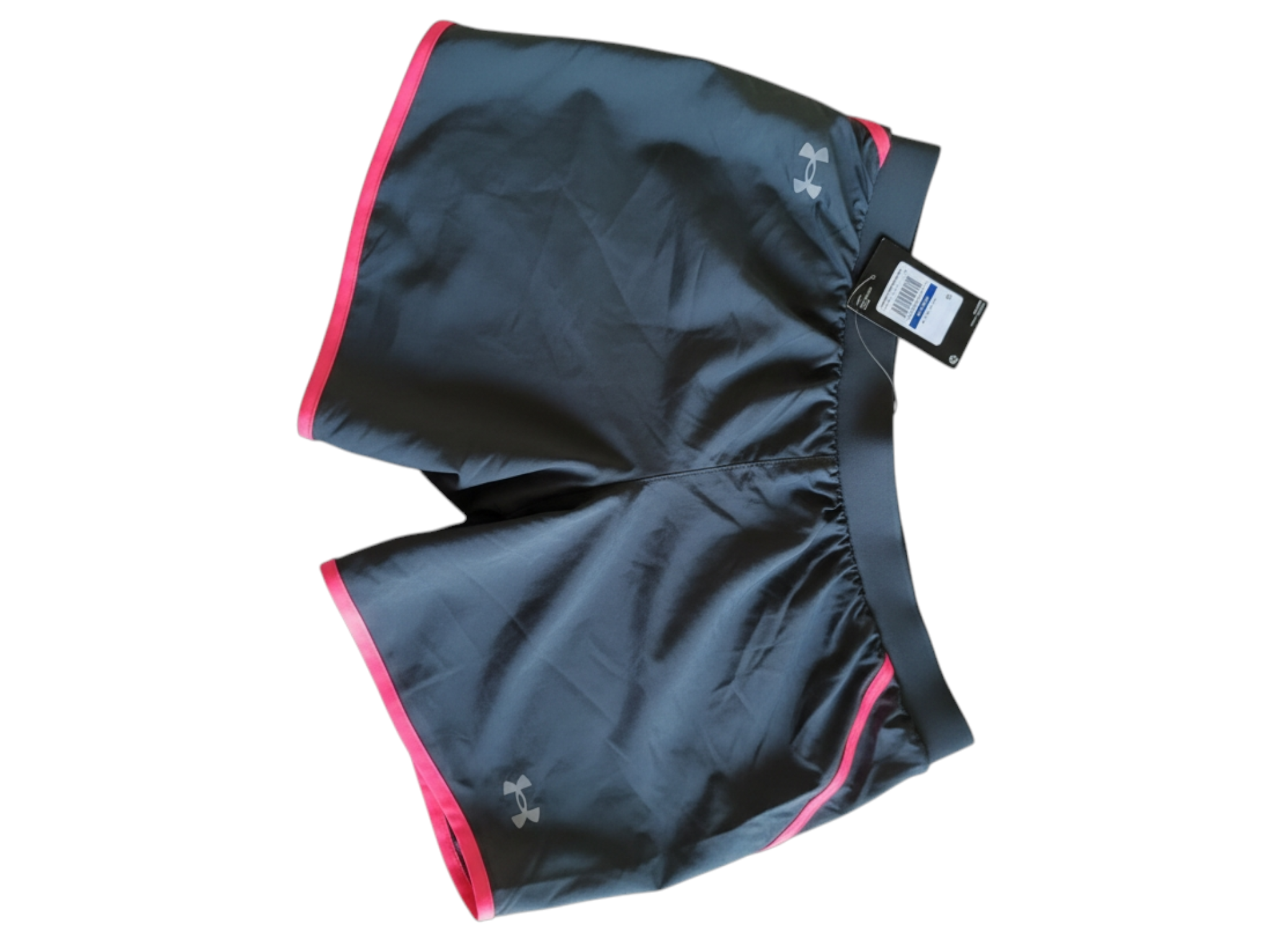 El contraste entre el gris oscuro y los detalles en rosa crea un estilo femenino y dinámico, reforzado por el icónico logo Under Armour en el bajo. Su cintura elástica negra proporciona un ajuste seguro y cómodo, permitiendo libertad total de movimiento en actividades como running, gimnasio, caminatas o entrenamientos funcionales.
