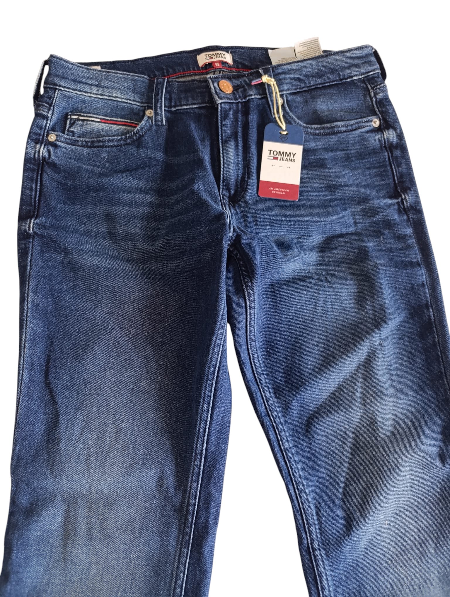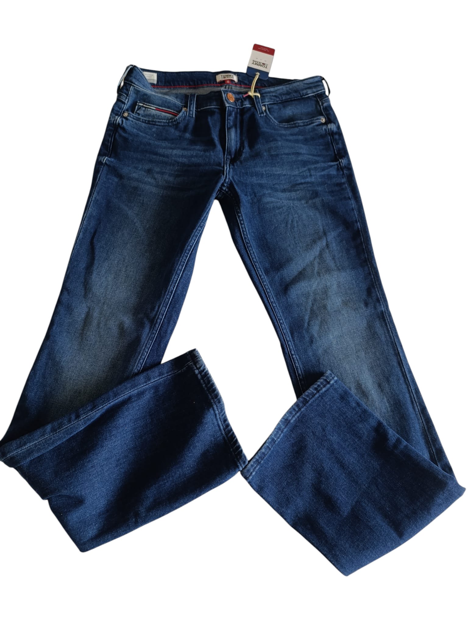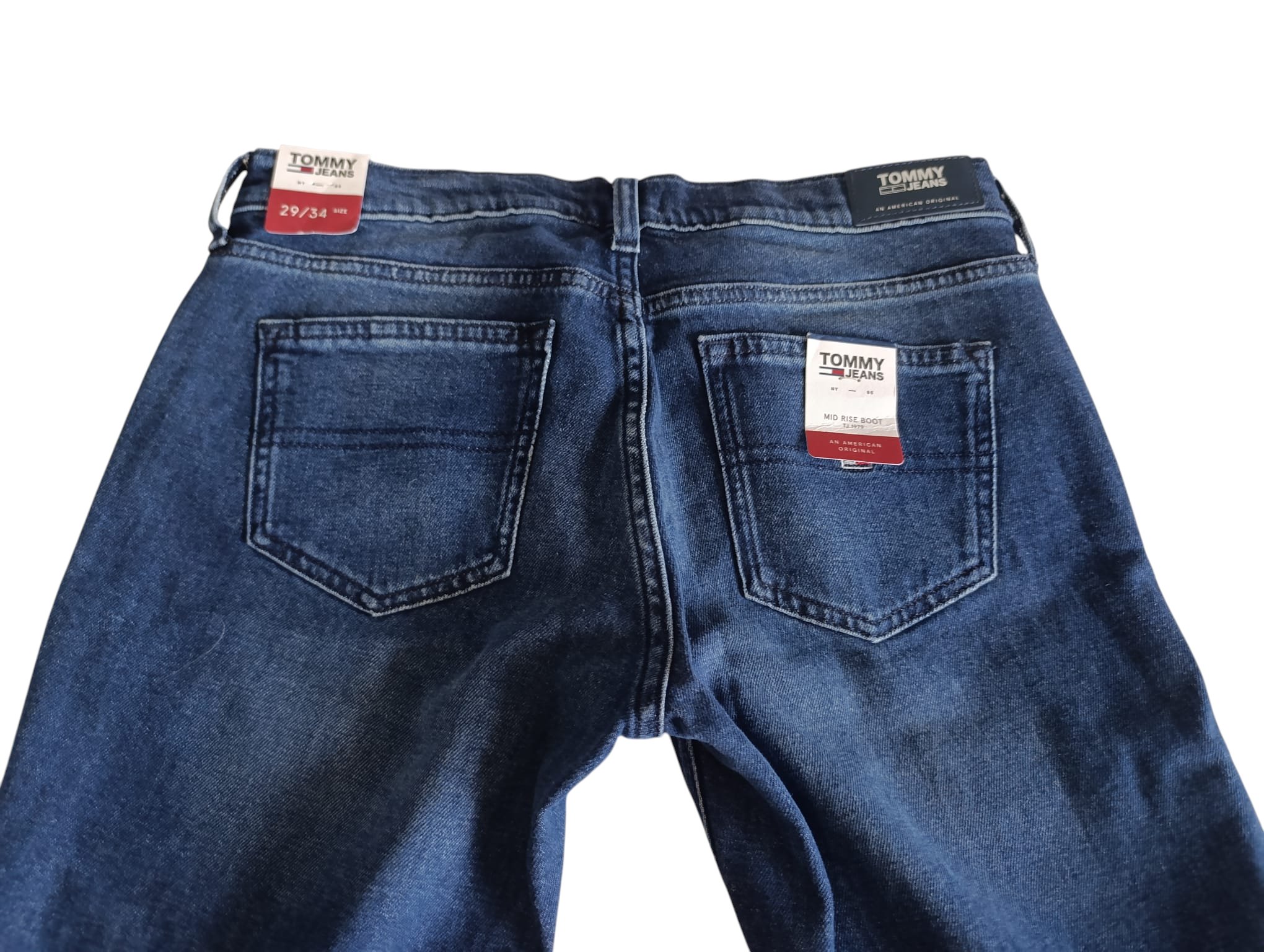 Jeans TOMMY HILFIGER de corte bootcut y tiro medio, confeccionados en denim azul con ligero desgaste. Ajuste favorecedor que estiliza la figura y aporta un look clásico y versátil, ideal para combinar con cualquier outfit casual o elegante.
