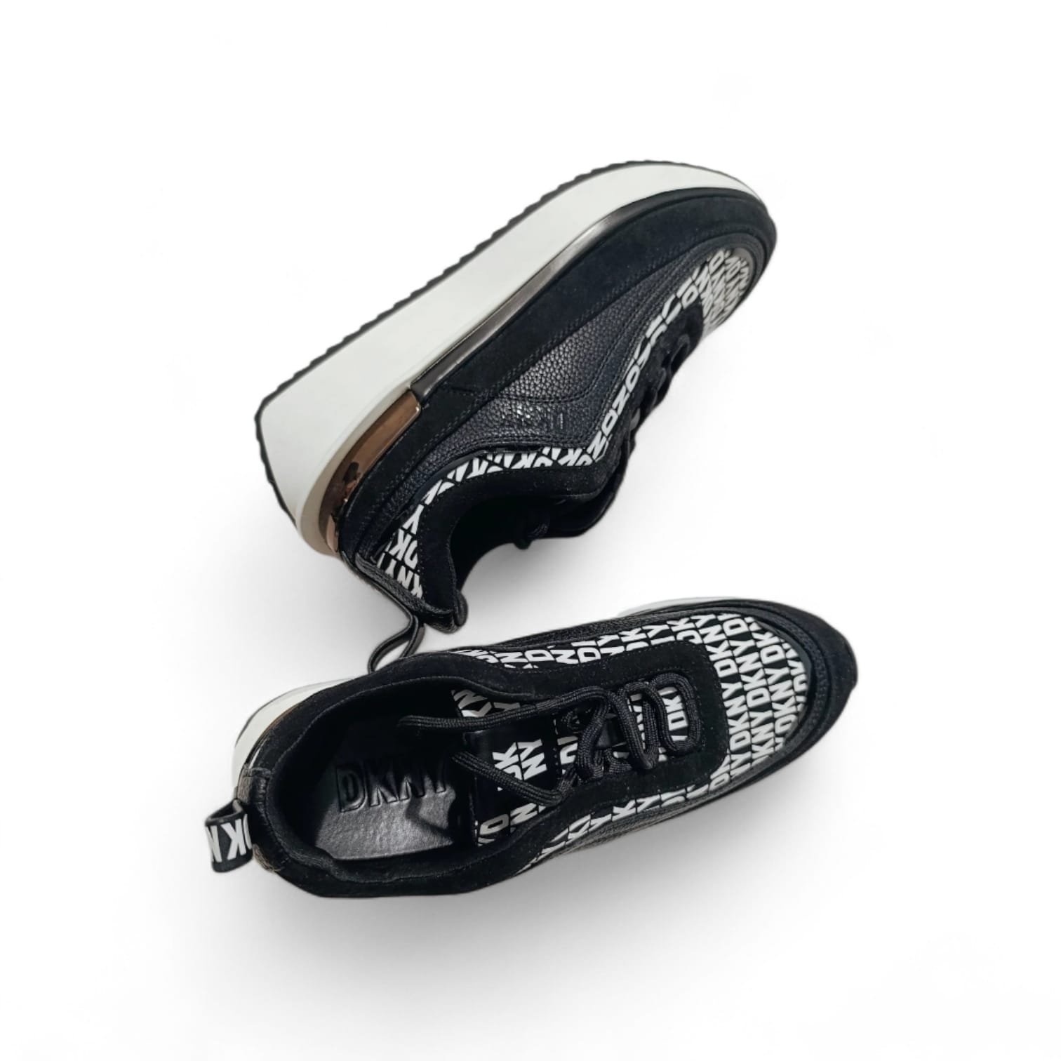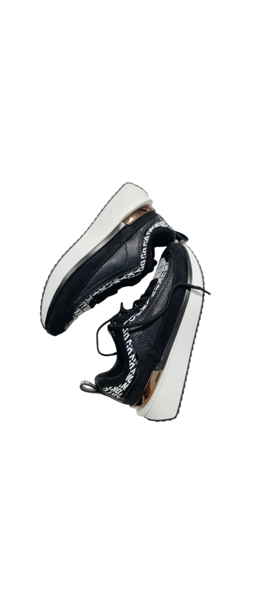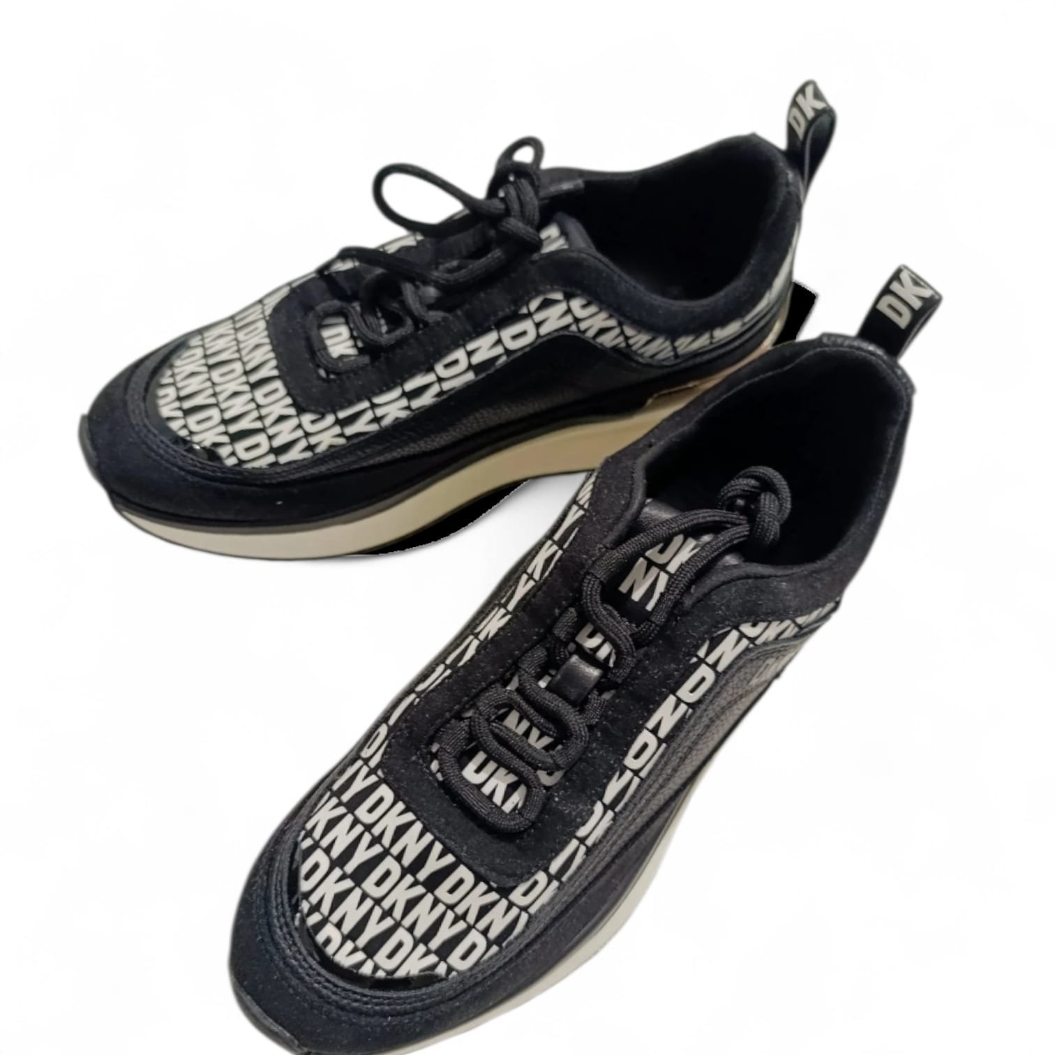Zapatillas DKNY de diseño moderno con estampado integral del logo. Combinan estilo urbano, comodidad y un acabado premium perfecto para looks casuales y deportivos.
