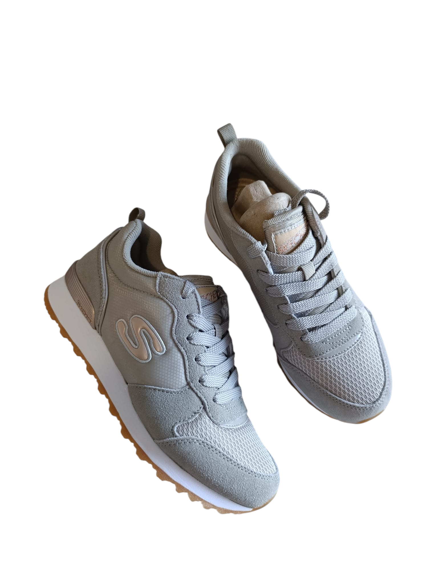 Las zapatillas Skechers para mujer en color gris combinan estilo urbano, comodidad y un diseño moderno pensado para el día a día. Su mezcla de malla transpirable y paneles tipo ante aporta un acabado sofisticado y resistente, mientras que la suela gum añade un toque actual que realza cualquier look casual.